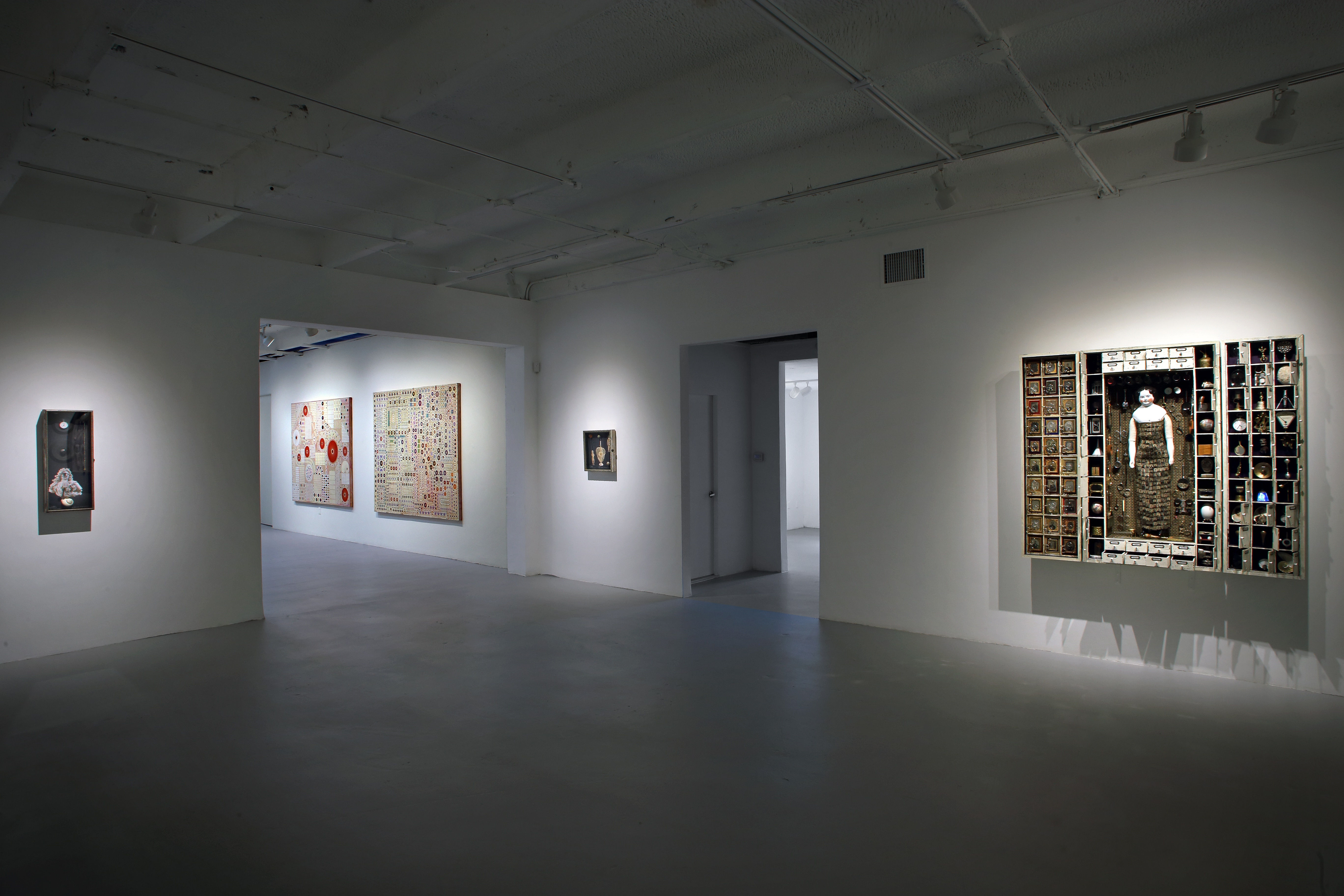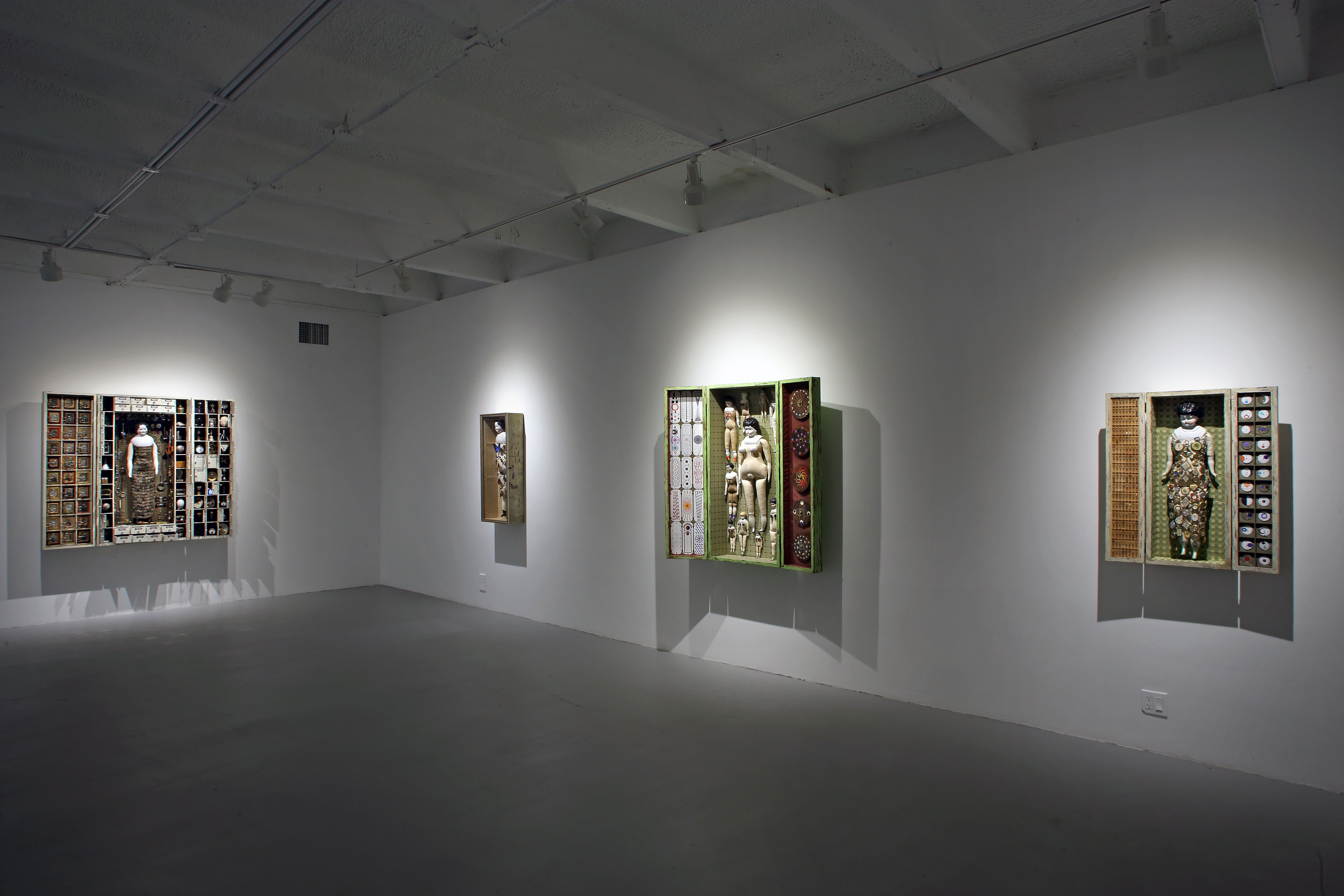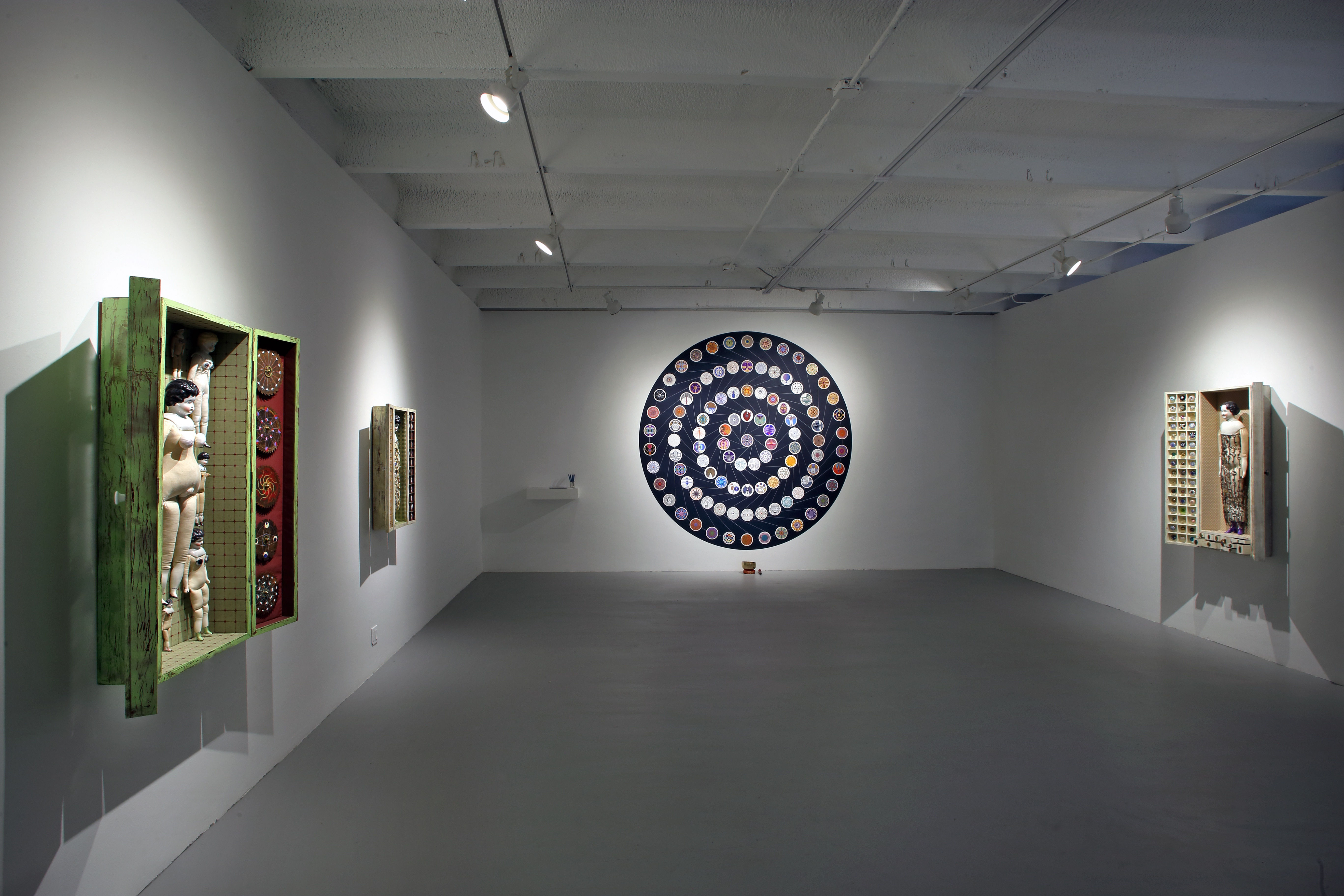 The human being goes through life accumulating knowledge and memories in the form of objects. In the assemblages created by the artist, these are organized thematically and are almost always centered around the figure of the woman embodied in a porcelain doll: the woman seen as a delicate ornament and bearer of beauty and pain. Although they are now the leading images of these assemblages, they were silenced at the time when the cabinets were considered sanctuaries reserved only for the owners and their closest friends. Women only accessed them for their care and cleaning. On the other hand, Estévez's cabinets have the charming and dissonant aura of furniture preserved but witness to the passage of time. And this factor is also present in his work as a hallmark: time and the human transformation caused by it. The interiors of these cabinets are a window to discoveries that become vivid, infinite and mystical. The drawers, classified taxonomically, name the objects and their spiritual contents. The use of seven cabinets surrounding the Cosmic Tarot interactive installation automatically personifies these assemblages: they come to life, they become spectators as well. And therefore, this work acquires meaning only if the spectator activates it by identifying their fate by the reading of a letter chosen by chance. The theatrical environment -something that the artist has handled previously in other pieces- is taken up at a curatorial level with the idea of ​​extending its uses to a more global and immersive area for the viewer. Generally, this concept in his work has been related to the roles that people play in everyday life to maintain a certain posture or appearance. As a result of these subversions, these hybrid characters emerge.